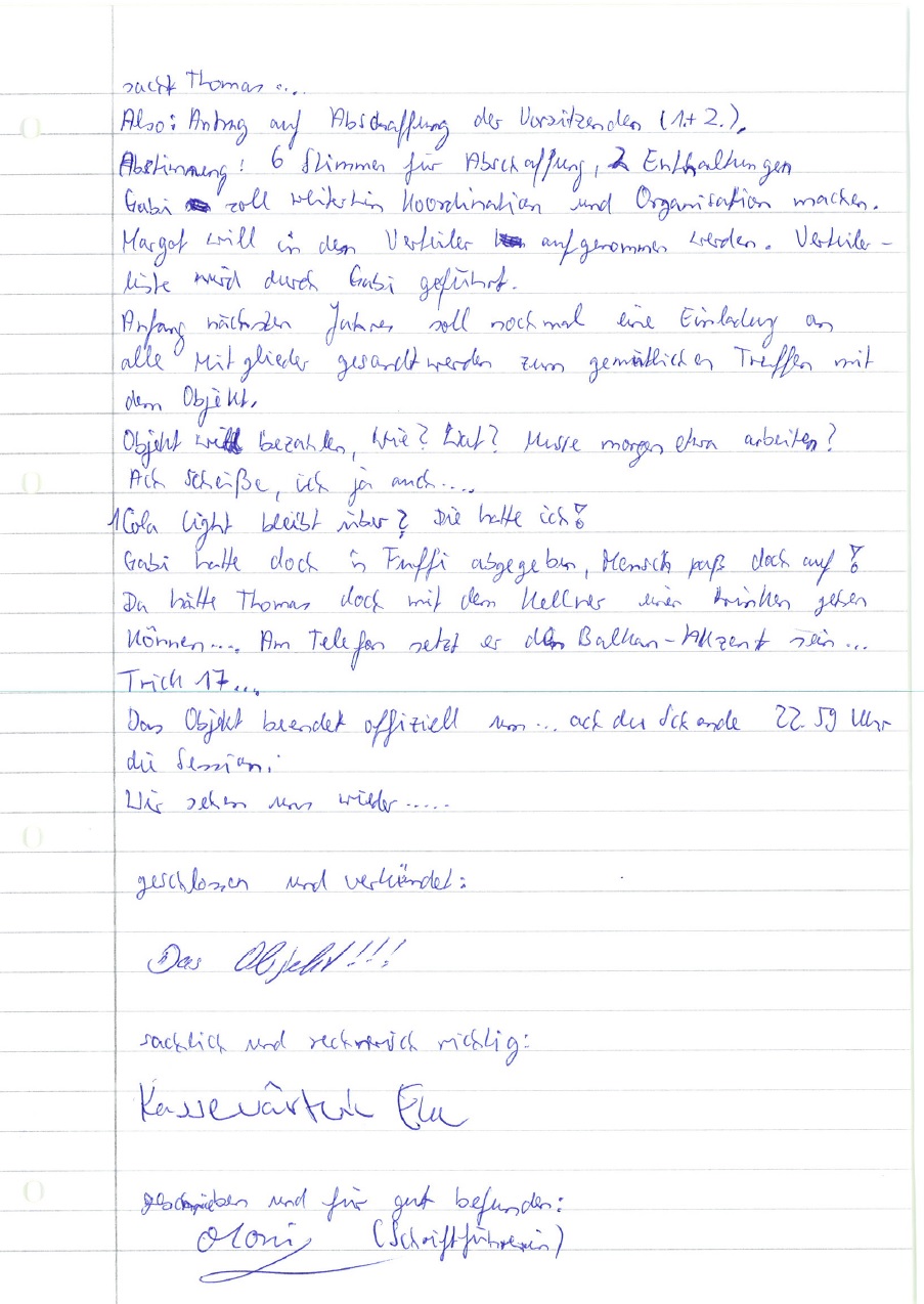 Und natürlich hat Moni auch wieder Protokoll geführt: