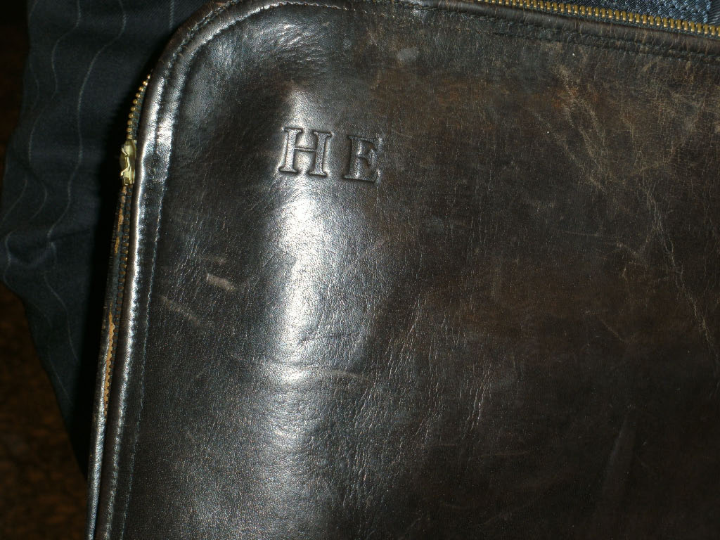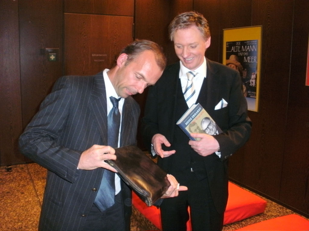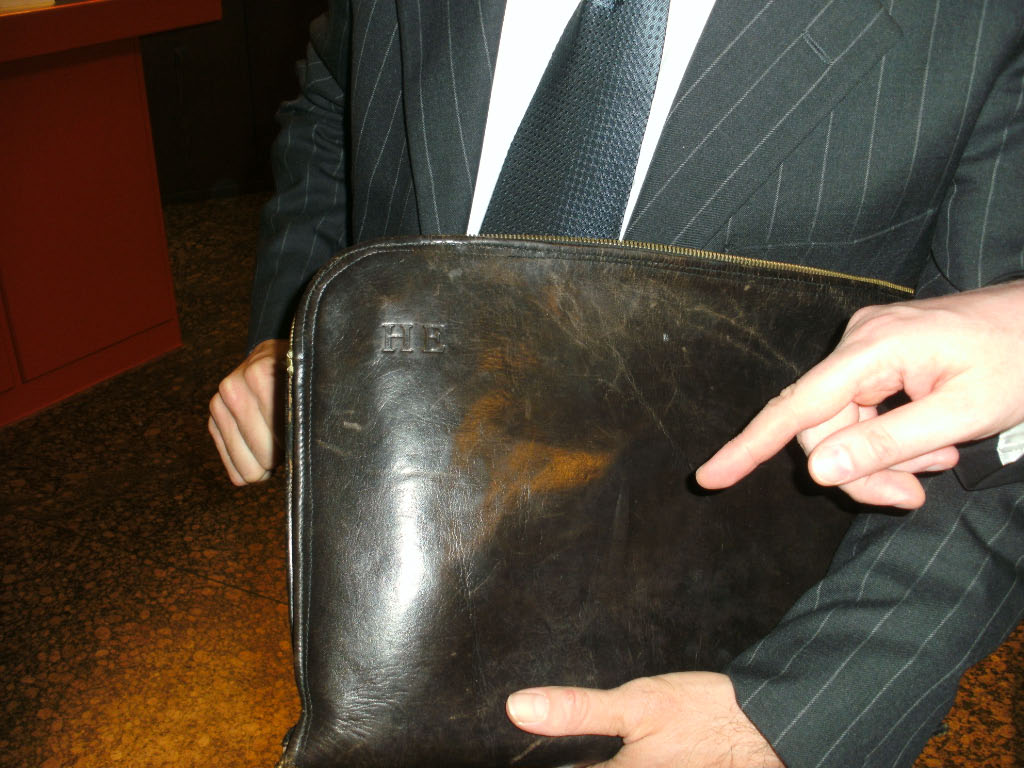 Er hatte sogar die original Aktenmappe seines Opas mit den eingeprägten Initialen "HE" dabei, die von Thomas gebührend bestaunt wurde.