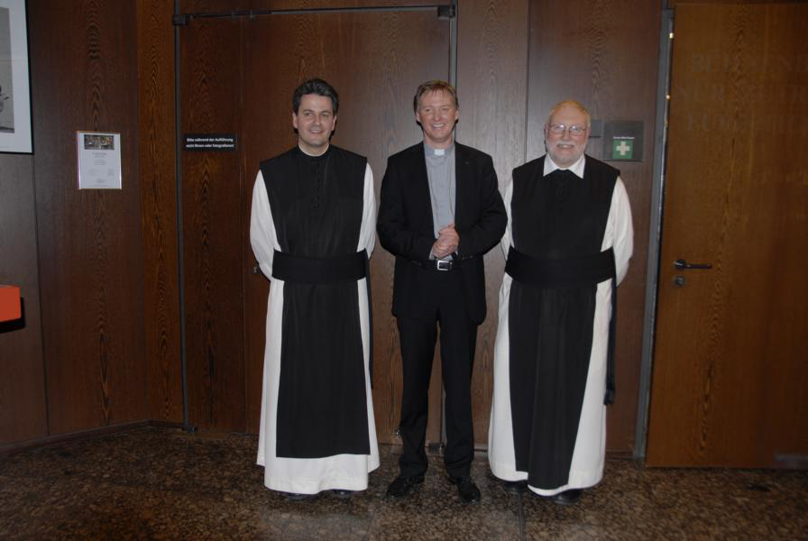 Außerdem waren bei der Vorstellung Prior Pater Pirmin (li.) und Pater Andreas (re.) vom Zisterzienserkloster Bochum-Stiepel anwesend.